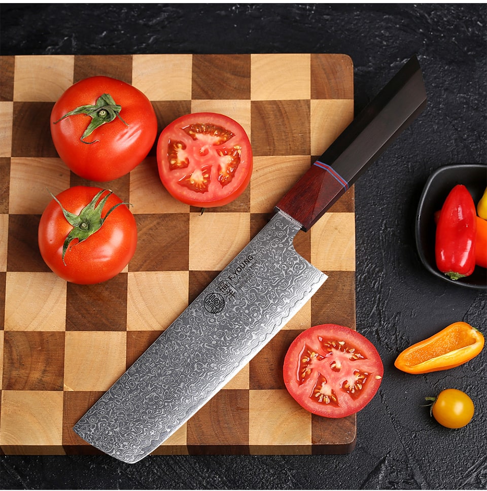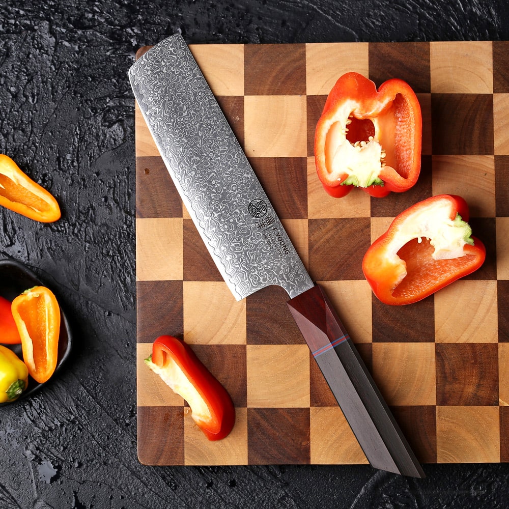 Couteau japonais Nakiri en acier Damas - Manche en bois de santal et ébène