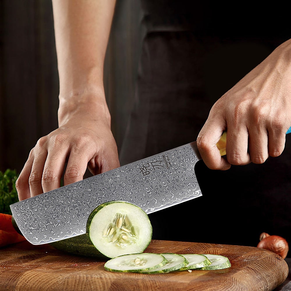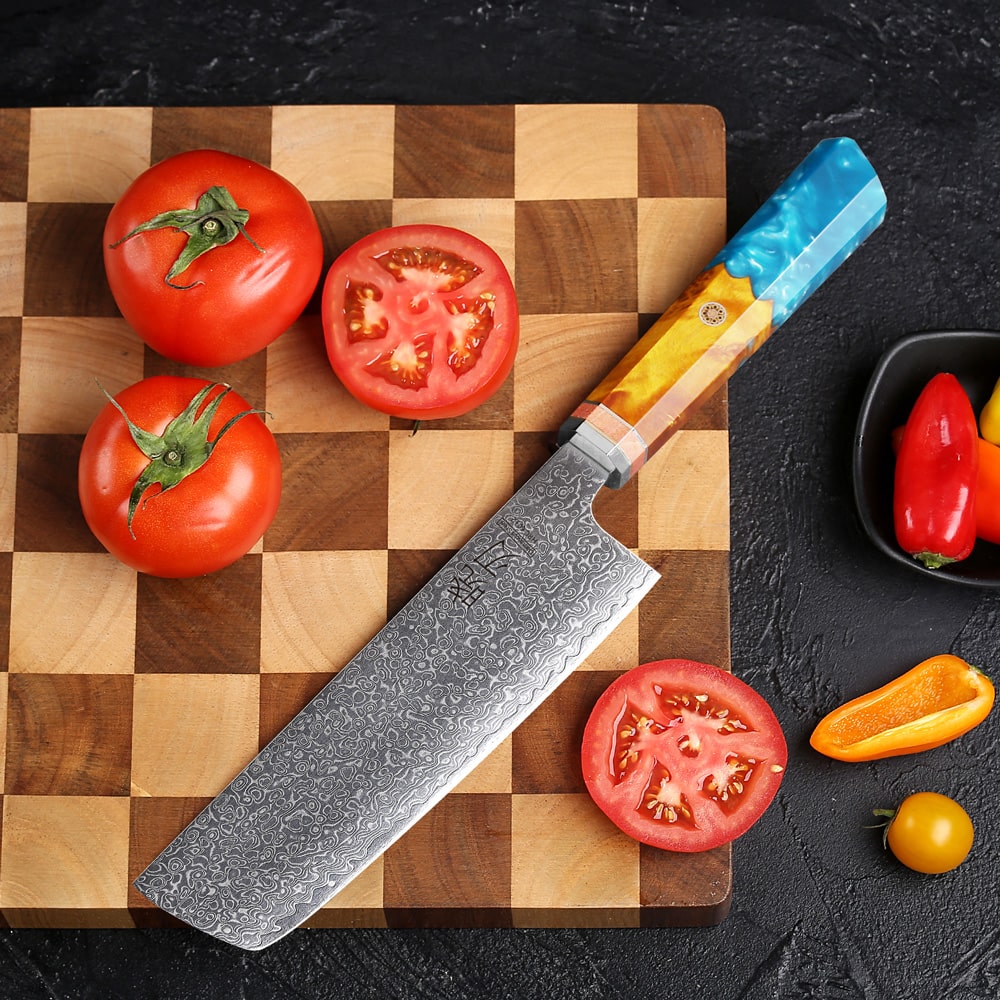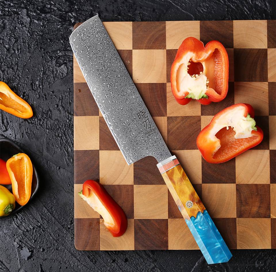 Couteau japonais Nakiri en acier Damas - Manche en bois stabilisé