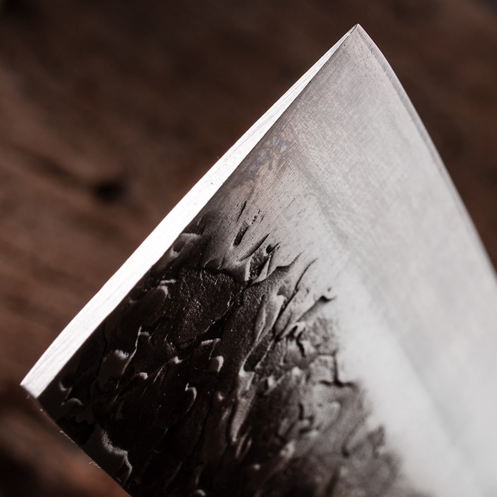 Le manche en bois pakka poli, au grain naturel raffiné, assure une prise en main ergonomique et parfaitement équilibrée. Il combine confort et contrôle, transformant chaque coupe en un geste naturel et sans effort, tout en ajoutant une touche d'esthétisme unique.