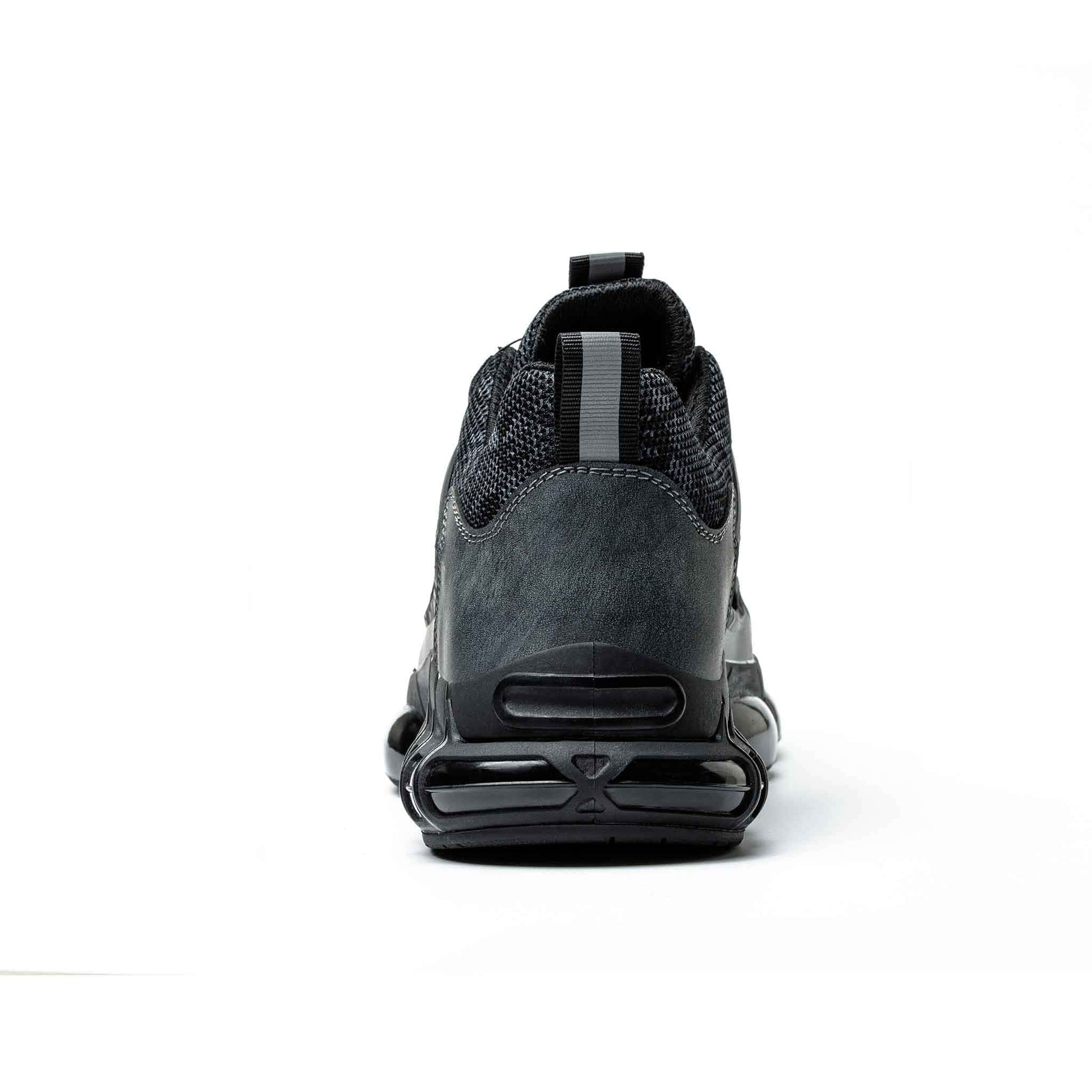 Puisant son inspiration dans le streetwear, la palette de couleurs intemporelle et vibrante de ces chaussures de sécurité légères avec bulles d'air, associe le noir intense à une touche subtile de gris.