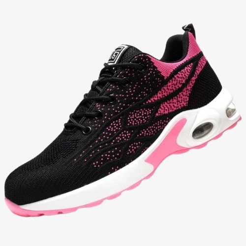 Avec leur couleur noire rose intemporelle et intense, ces baskets s'inspirent du style streetwear pour vous donner un look aussi moderne que sécurisé. Optez pour ces chaussures de sécurité légères avec bulles d'air pour femmes et profitez de la tranquillité d'esprit, de la commodité et du style, tout en gardant vos pieds au sec et complètement à l'aise.