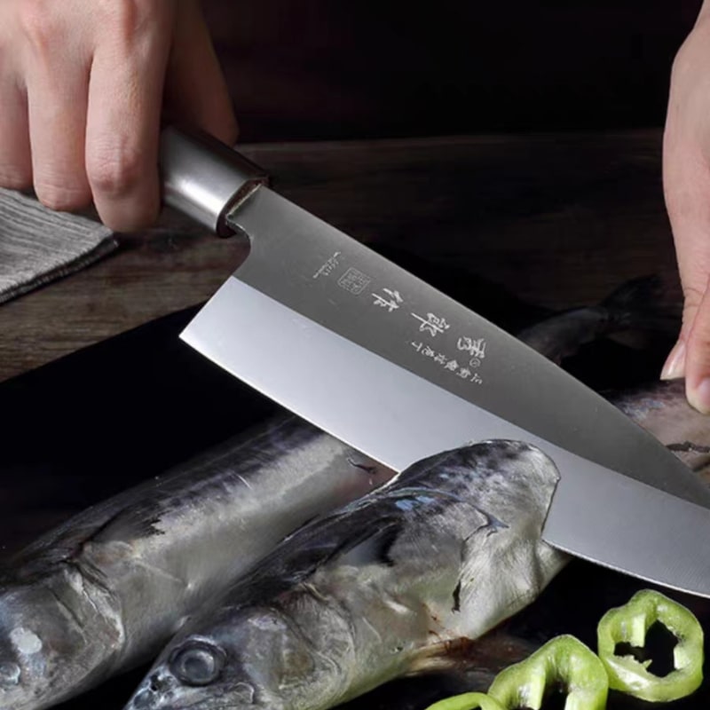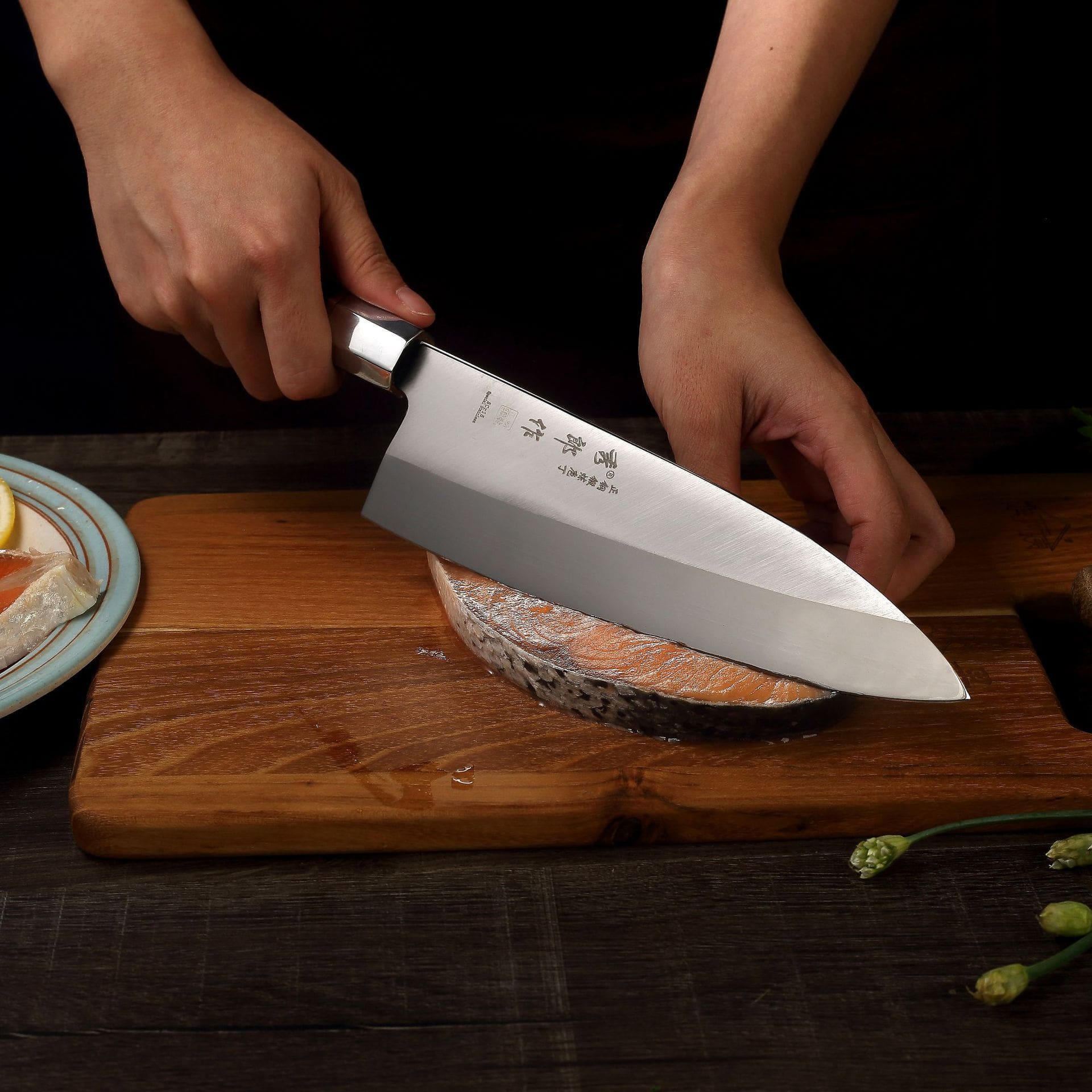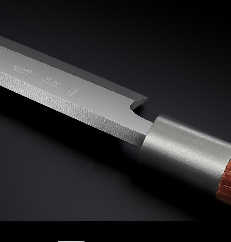 Lame en forme de V, tranchant oblique, plus fin et plus tranchant que les couteaux occidentaux. Cela se prête à la précision et au détail de la cuisine japonaise.